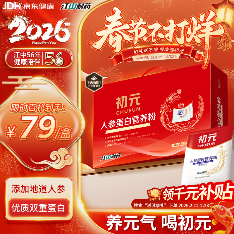 初元江中人参蛋白粉年货礼盒营养滋补礼品术后蛋白补充送中老年420g