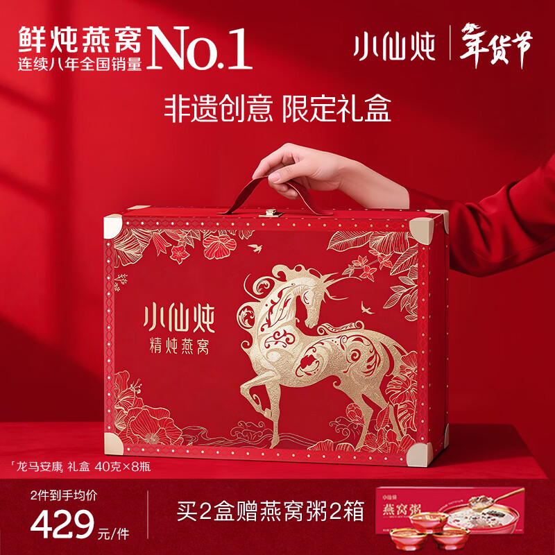 小仙炖精炖燕窝礼盒【年货】营养滋补品鲜炖即食 新年礼物孕妇 营养品 【最快当日达】马年礼盒- 40g*8瓶 低糖