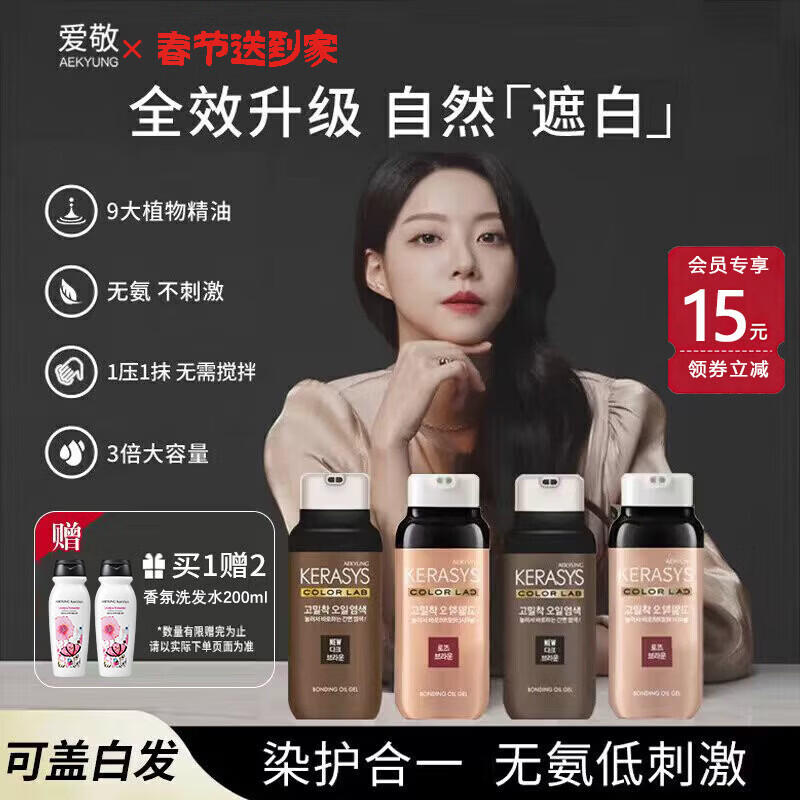 爱敬(AEKYUNG)染发膏植物精油染发剂深棕250g无氨无刺激自己在家染发盖白男女士