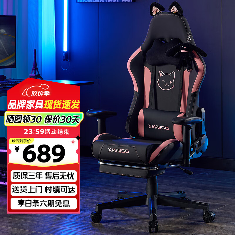DOWINX电脑椅人体工学椅子家用游戏电竞椅可躺办公椅舒适久坐转椅升降椅 升降旋转扶手-黑粉色