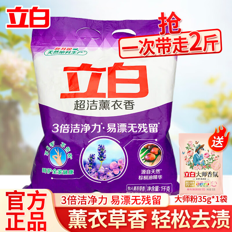 立白超洁薰衣香洗衣粉洁净易漂洗无残留不伤手家用实惠装 【2斤袋装】熏香粉1000g+35g