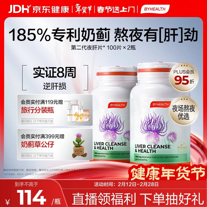 BYHEALTH第二代夜肝片100粒*2瓶 护肝片奶蓟草水飞蓟熬夜