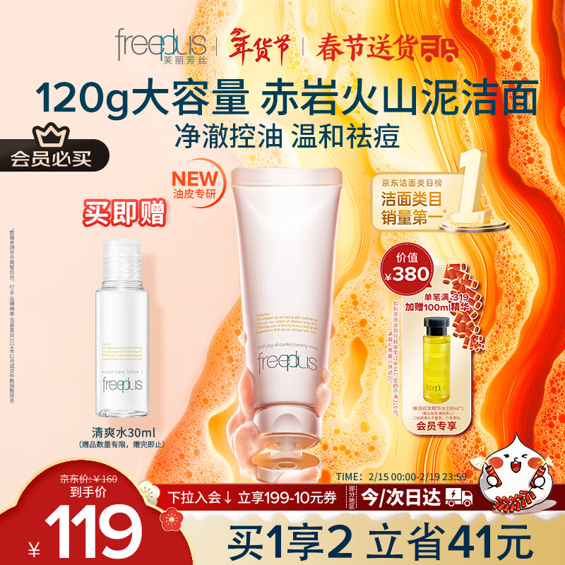 芙丽芳丝(Freeplus)洗面奶男女士氨基酸洁面乳净澈控油洗面霜 120g