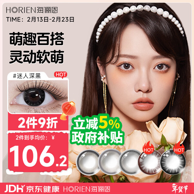 海俪恩美瞳彩色隐形眼镜小直径 日抛30片 黑色 0度