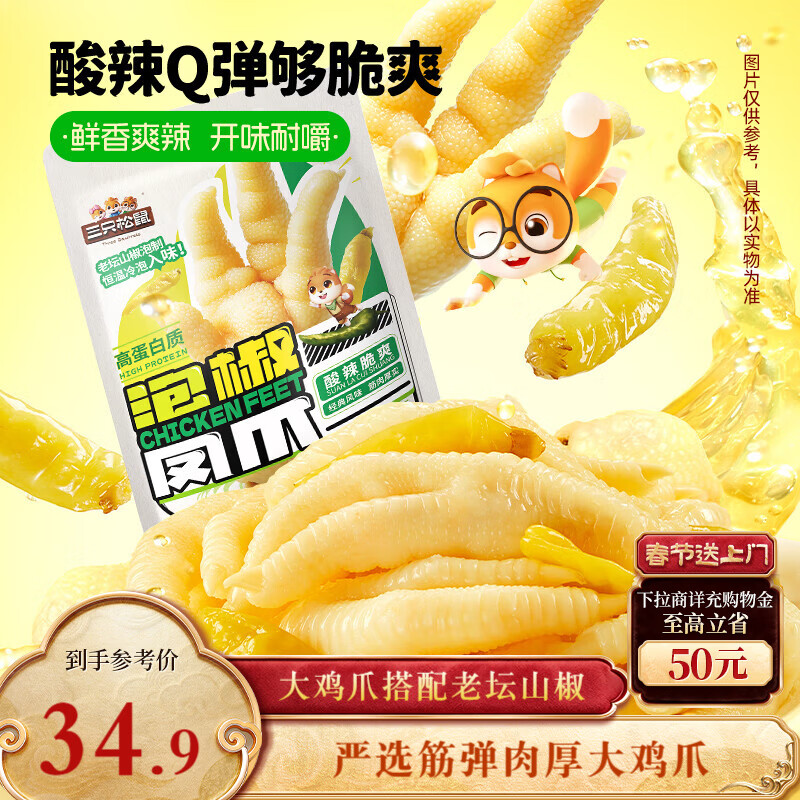 三只松鼠 泡椒凤爪山椒味500g20袋高蛋白追剧必备休闲零食大礼包年货