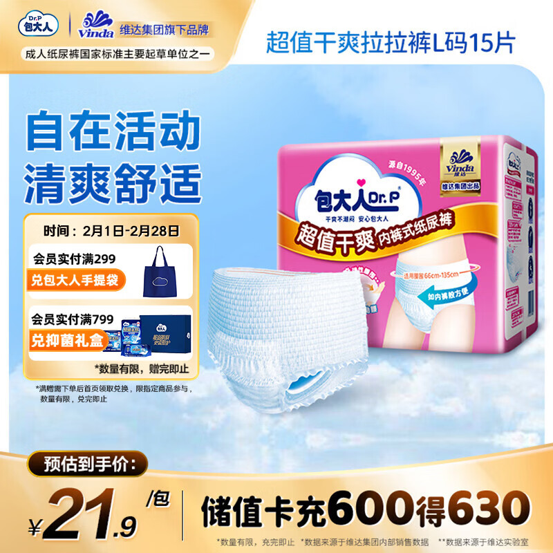 包大人(Dr.P)超值干爽成人拉拉裤L15片(腰围:66-135cm)老年人内裤型纸尿裤