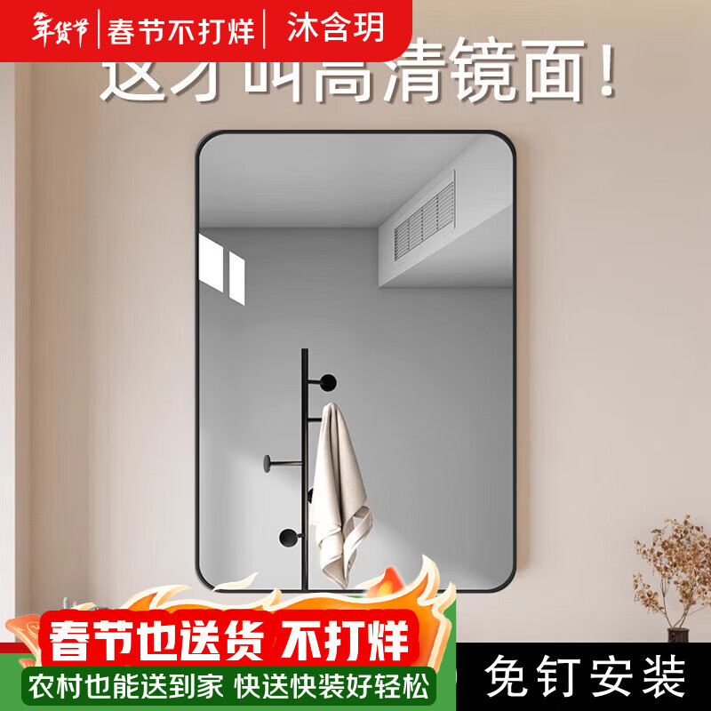 沐含玥卫生间镜子贴墙自粘洗手间浴室镜厕所免打孔梳妆化妆镜高清玻璃镜