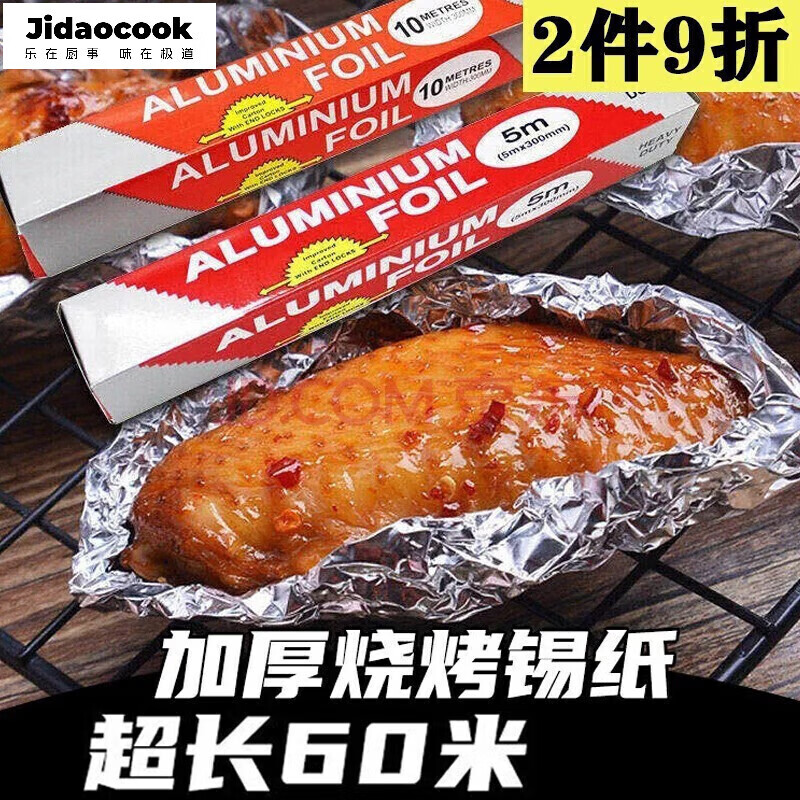 Jidaocook60米120米烧烤锡纸烧烤烘焙锡纸加厚烤肉烤箱锡箔纸铝箔纸 10微米厚款锡纸 30厘米宽10米长