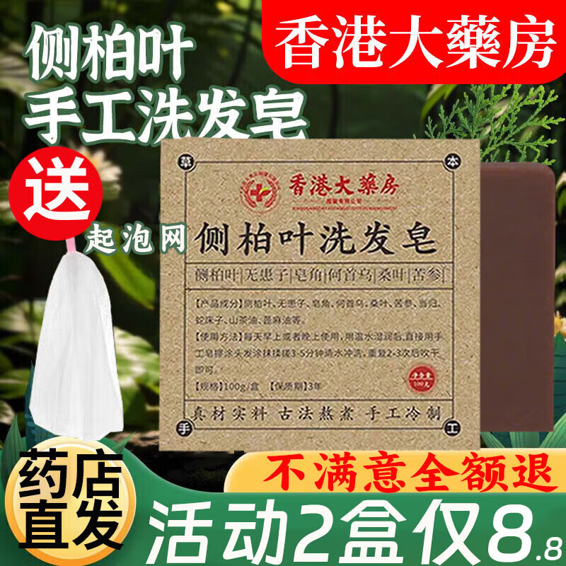 香港大药房侧柏叶洗发皂水何首乌无患子苦参手工洗头皂送起泡网 【1盒*100g】侧柏叶洗发皂