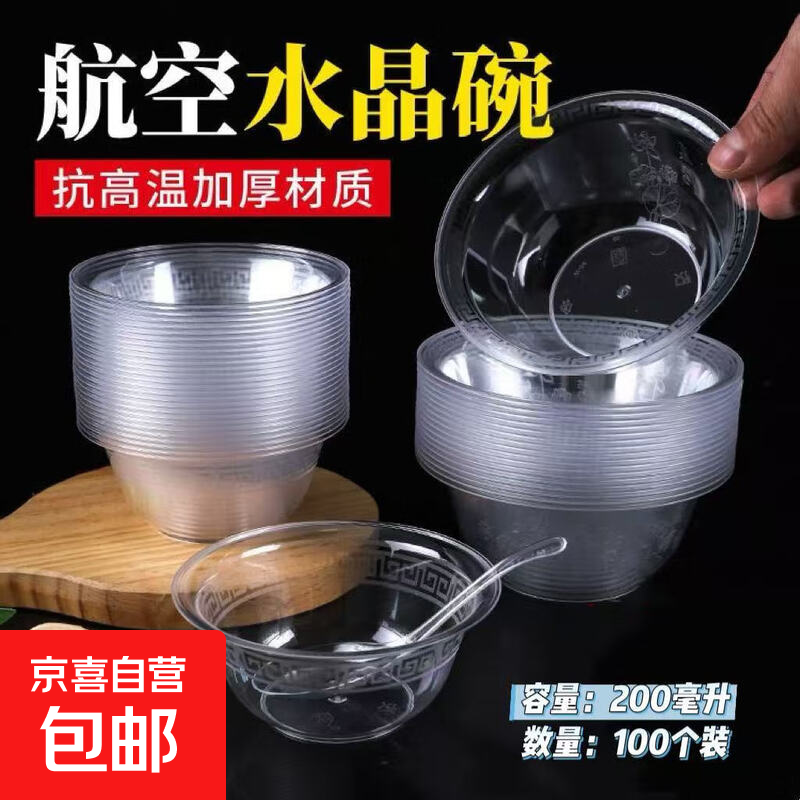 一次性航空水晶碗硬塑饭碗塑料碗食品级加厚汤碗粥碗火锅餐具 航空碗100个【350毫升】