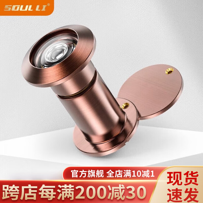 首力防盗门猫眼门镜家用监控摄像头门铃堵孔通用二合一防盗上入户大门 孔径14-18mm/门厚50-70 红古铜