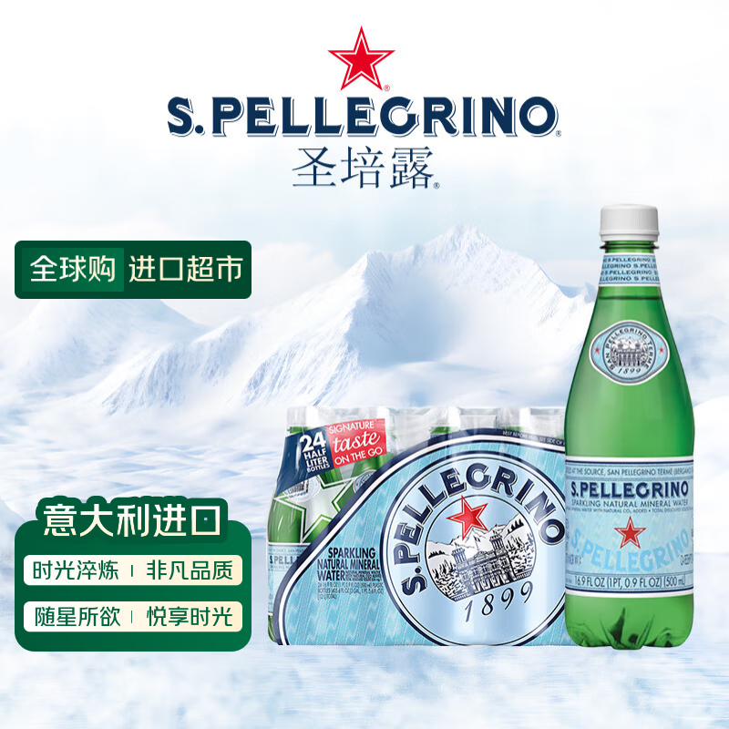 圣培露(S.Pellegrino)含气天然矿泉水 500mlx24 塑料瓶畅享装 意大利原装进口气泡水