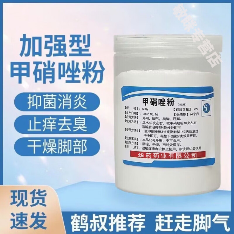 鹤叔推荐甲硝唑粉脚臭粉脚汗脚气真菌杀菌止痒除臭加碘伏泡脚正品 甄选优质粉末 500克/1瓶 工厂直发:2025最新款