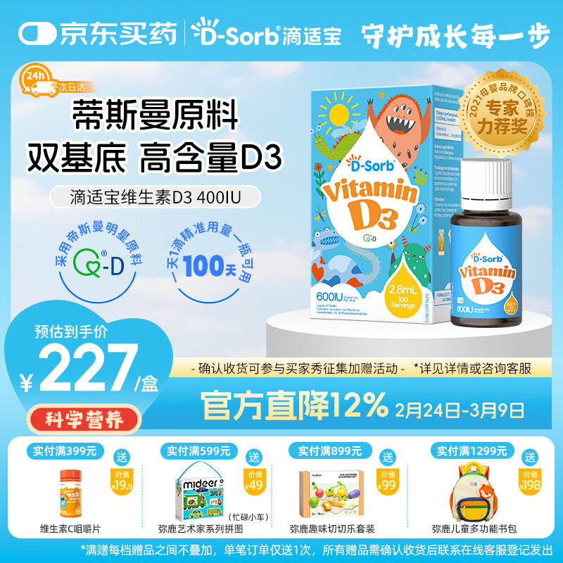 D-Sorb滴适宝维生素D3滴剂600IU儿童vd3滴剂2.8ML维生素d3加拿大进口