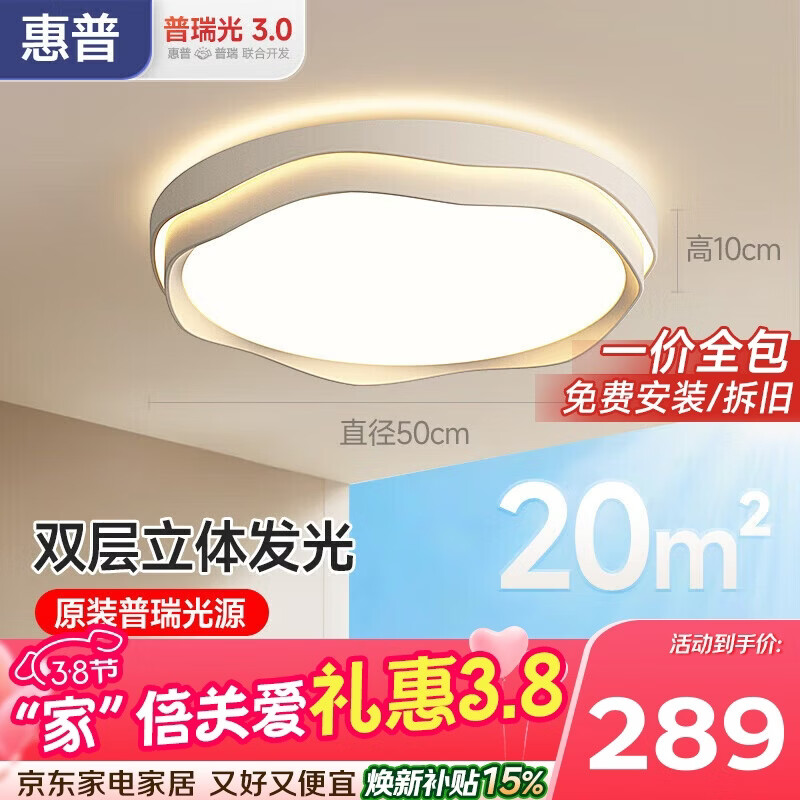 惠普普瑞护眼LED卧室儿童房云朵奶油风吸顶灯中山灯具臻之光包安装