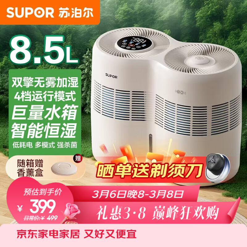 苏泊尔【双子星】高端加湿器母婴家用卧室无雾1090大加湿量落地式双桶全屋办公室大空间加湿神器EHLN-71E