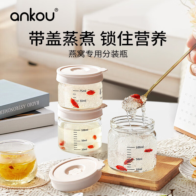 安扣燕窝分装瓶食品级可蒸煮燕窝杯高硼硅玻璃花胶燕窝炖盅分装瓶 【轻奢款-四个装】100ml*4