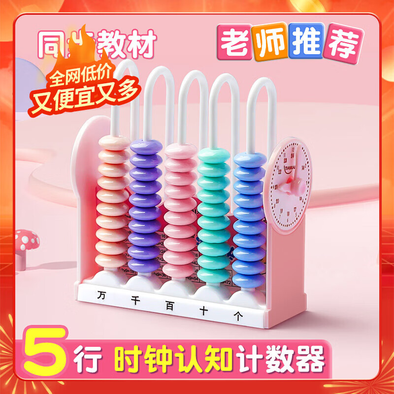 离草开学必备计数器一二年级上数学教具学习用品钟表儿童五档儿童加减法教具加减法教学专用 5行粉色