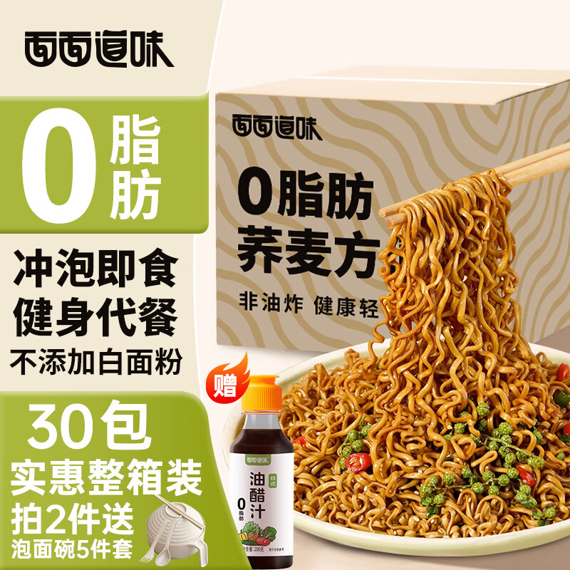 面面道味 0脂肪荞麦方便面60g*30包带调料减代餐免煮荞麦面条 【30袋面+送1瓶0脂油醋汁】