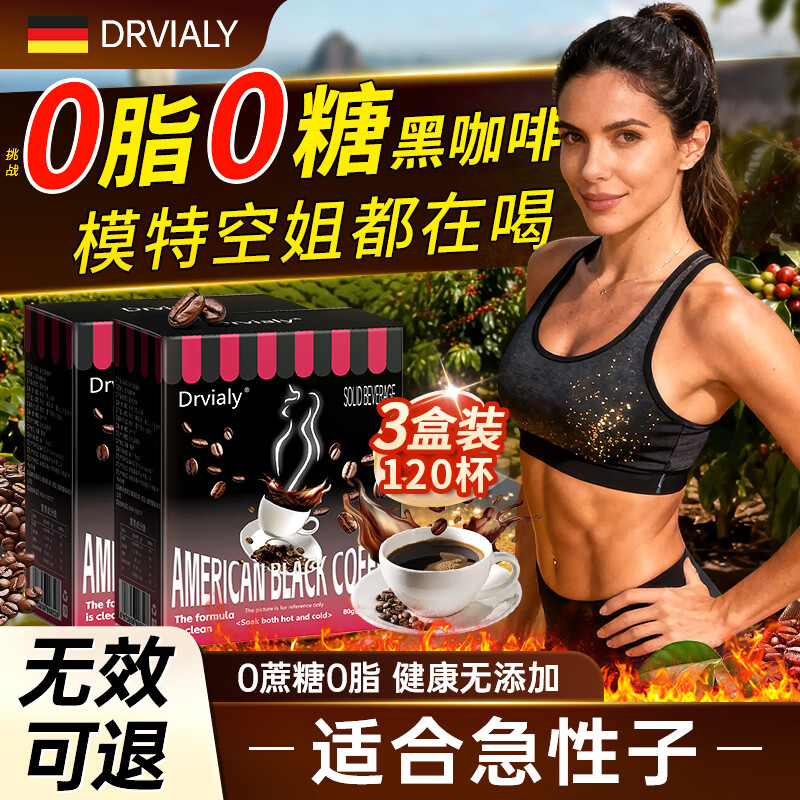 DRVIALY美式黑咖啡0糖0脂0卡减肥减脂瘦身高效燃脂减肥瘦肚子快燃脂全身 三盒装【顽固肥胖99%选择】