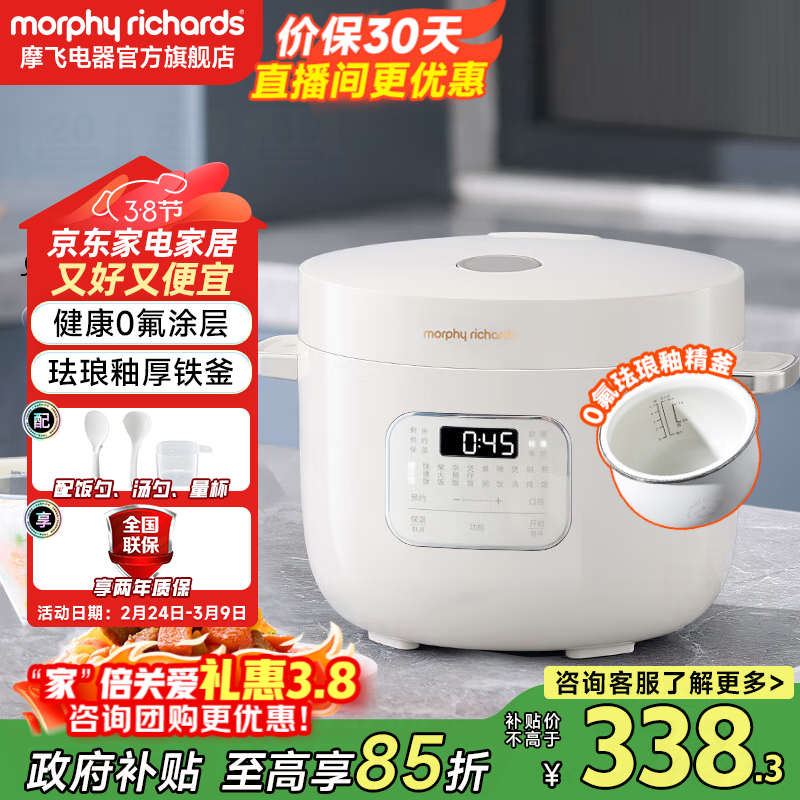 摩飞电器电饭煲家用2-3-4人小电饭锅0氟涂层珐琅内胆迷你一人食小型加厚铁釜不粘多功能2.5L升 MR8502 标配-椰奶白 2.5L