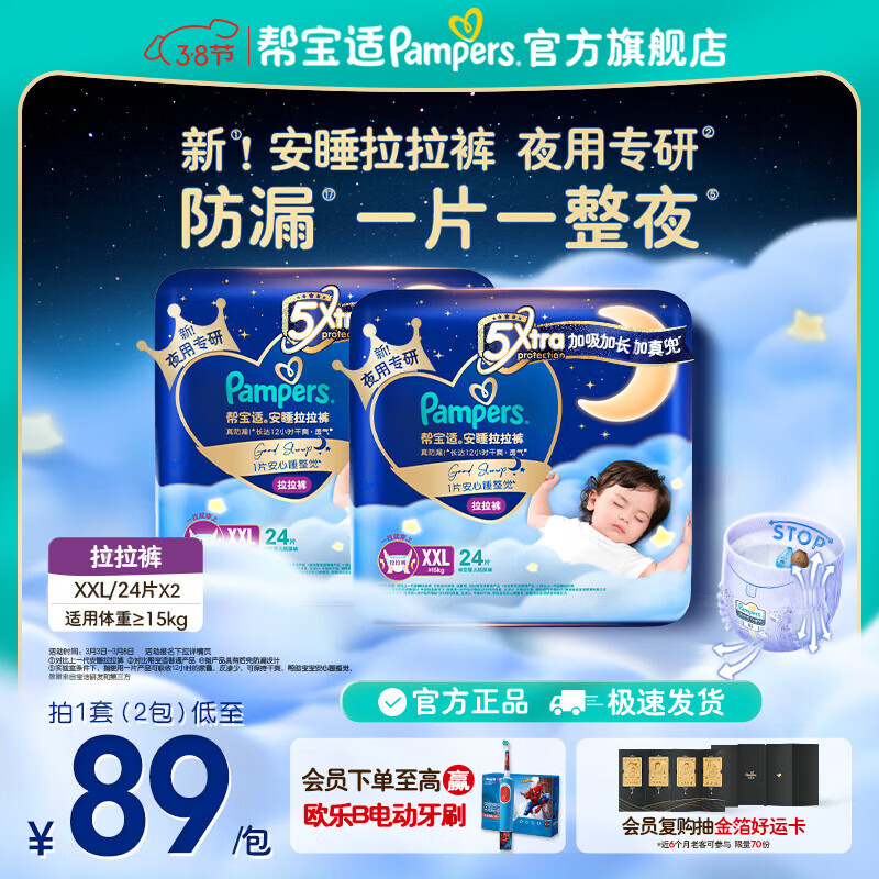 帮宝适【整觉王者】新安睡拉拉裤超薄透气 婴儿尿裤尿片尿不湿尿裤 安睡拉拉裤XXL48片(16-18kg) 常规款