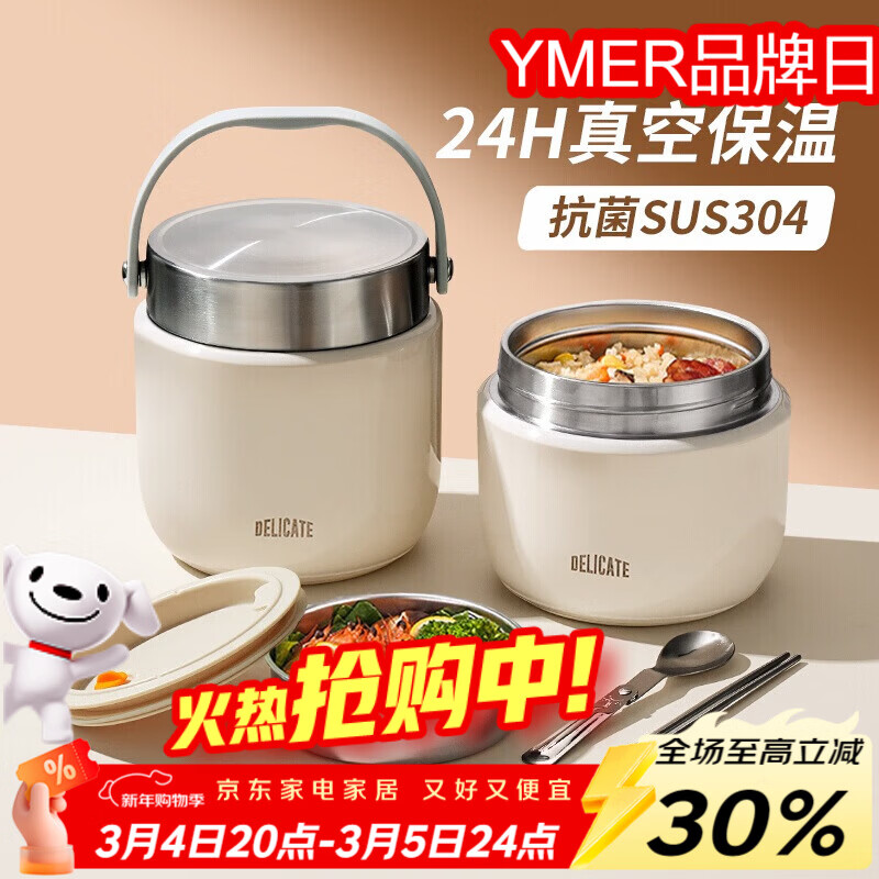 ymer双层保温桶饭盒超长提桶上班族学生带饭自营新款不锈钢装汤壶碗