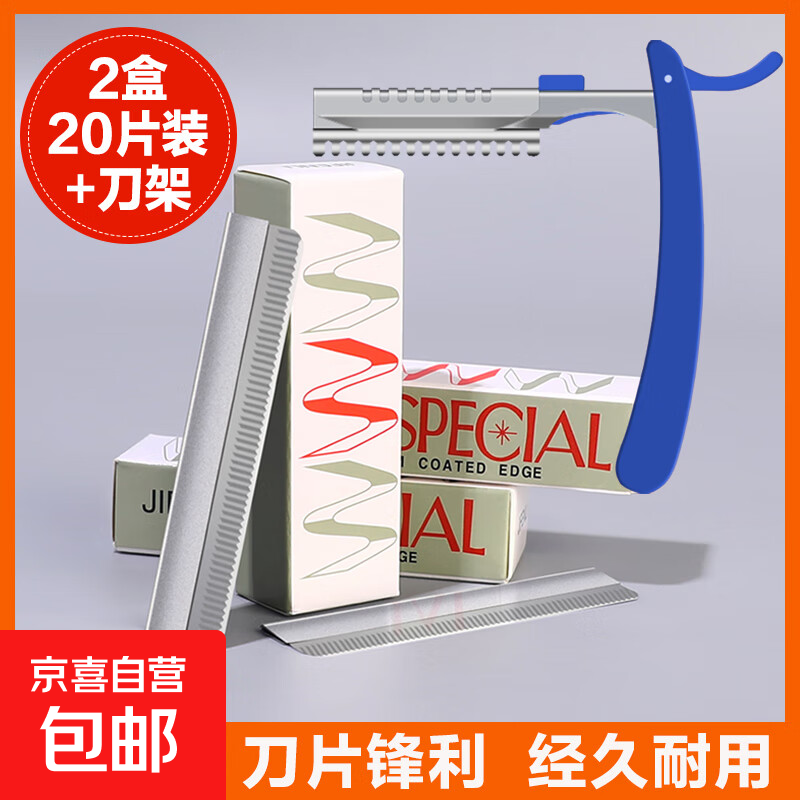 【便宜好用】刮眉刀片套装化妆师美容院女生专用初学者修眉毛刀片 2盒(20片装)+刀架