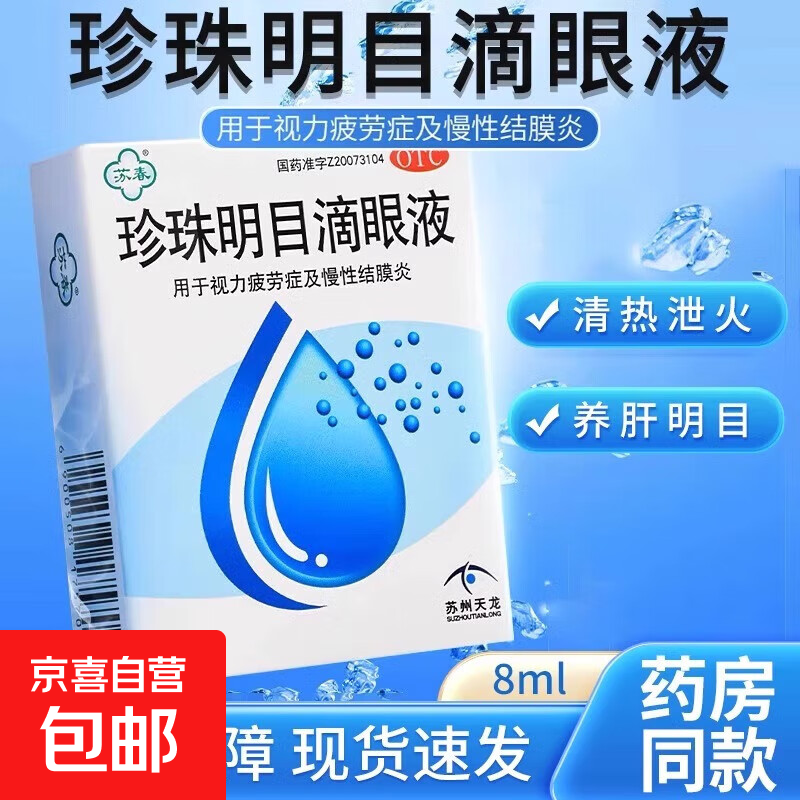 珍珠明目滴眼液8ml眼药水疲劳眼干眼涩止痒红血丝慢性结膜炎消炎止痒视力模糊流泪早期老年性白内障苏春 1盒
