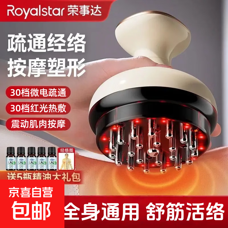 荣事达电动经络刷刮痧仪充电数显震动全身通用疏通按摩神器 全配充电款【9档脉冲+9档热敷+微电针灸】送5精油