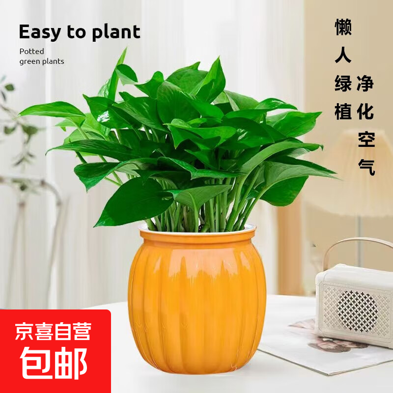 新特价绿萝盆栽室内客厅办公吸甲醛净化空气水培植物绿植花卉好养 【1盆】绿萝+橙色南瓜盆自吸水 整体含盆高度20-25cm