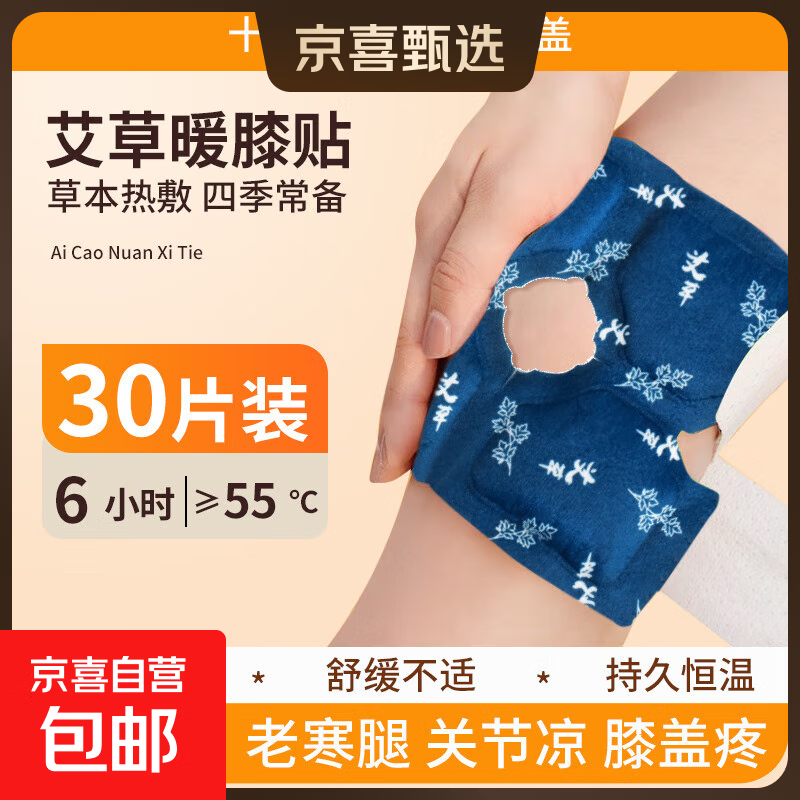 优艾客艾草膝盖贴蒸汽热敷关节暖护膝贴老寒腿发热保暖正品艾灸贴 暖膝热敷贴【30片装】