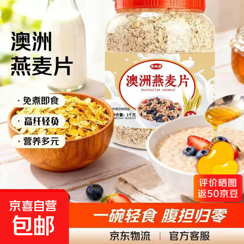 澳洲燕麦片原味无添加开水冲泡即食免煮早餐代餐杂粮冲饮 澳洲燕麦1000克一桶