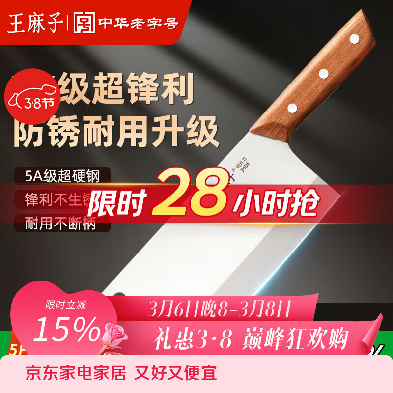 王麻子家用菜刀厨房专用 手工锻打切片切菜切肉刀具不锈钢切片刀