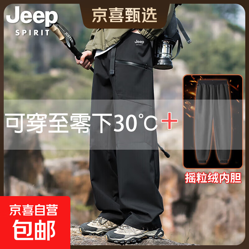 JEEP SPIRIT【无惧风雨雪】吉普冲锋裤男冬季加绒加厚防风滑雪裤旅游裤休闲裤 多场景/可拆卸/暮江黑-[三合一] XL 【建议145-165斤】