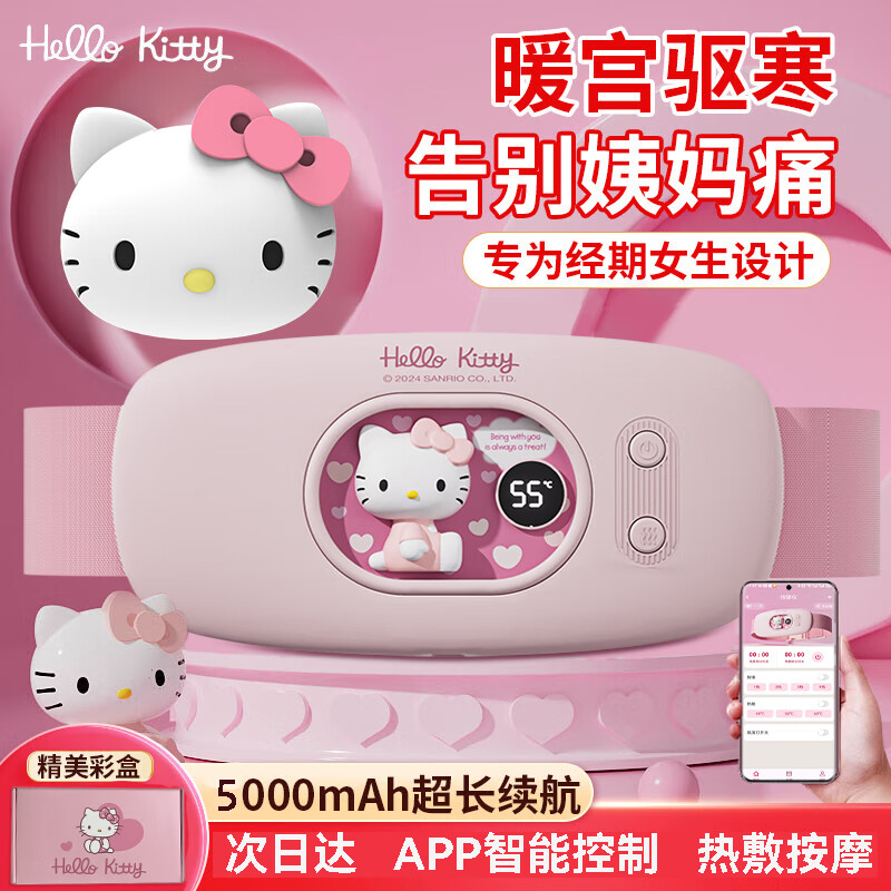 迪士尼暖宫腰带大姨妈痛经缓解神器月经生理期暖宝宝肚子生日礼物女生 【三丽鸥凯蒂猫APP】5000毫安+热敷+按摩