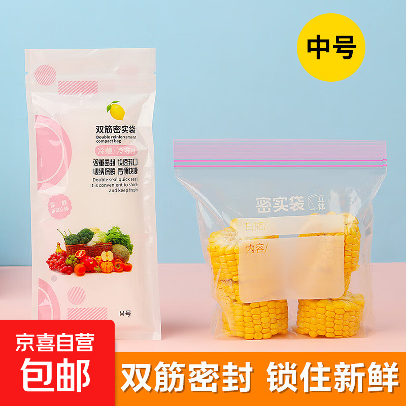 密封袋保鲜袋加厚防漏冰箱冷藏食品分装食品级双筋封存收纳 常规够用 中号30支