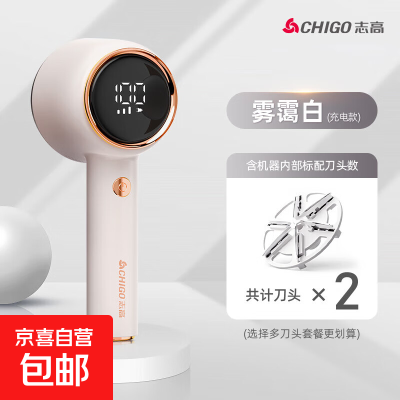 志高(chigo)毛球修剪器 衣服去毛球器剃毛器去毛剃毛打毛除毛刮毛剪毛吸毛衣起球家用神器 雾霭白·三档数显 【赠备用1刀头】
