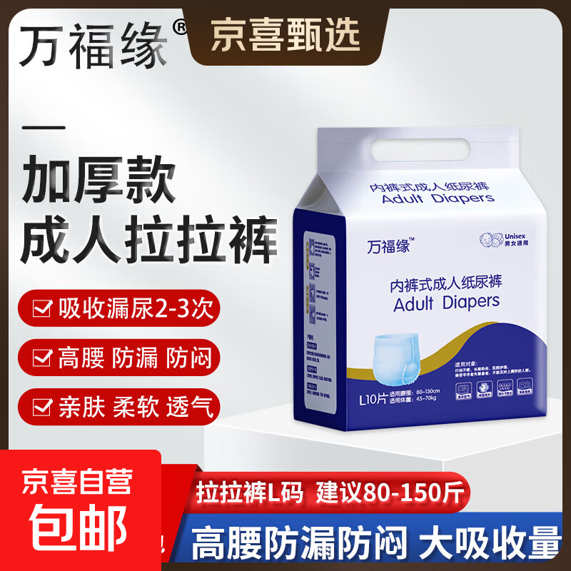 万福缘加厚成人内裤拉拉裤纸尿老年人专用尿不湿男女士加大号夜用 L码10片【加厚款 建议80-150斤】