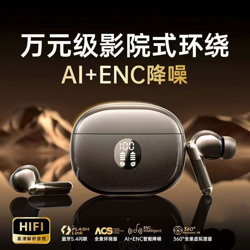 AI降噪】蓝牙耳机柏林之声无线运动跑步入耳式通话降噪游戏无延迟超长续航 墨玉黑高级【9D音效】