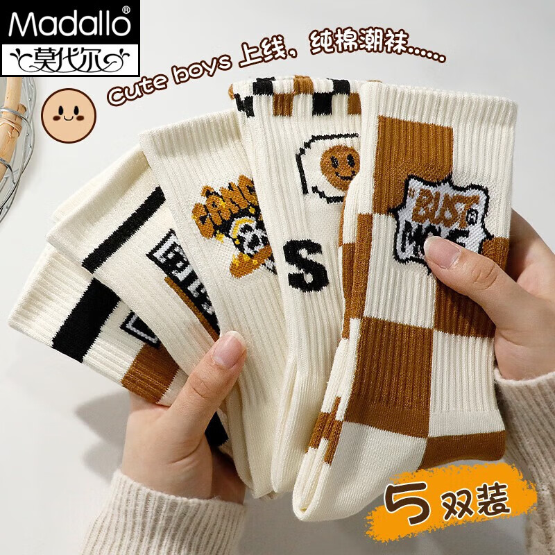莫代尔袜子男士秋冬纯棉长袜青少年学生抗菌防臭吸汗透气休闲百搭中筒袜 纯棉潮袜 5双 均码