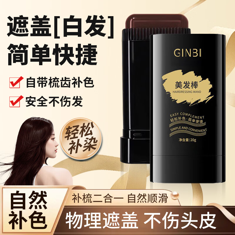 吟美白发遮盖神器不掉色一次性染发笔美发棒植物补发根黑发黑棕色咖啡 黑色美发棒20g/~1支装
