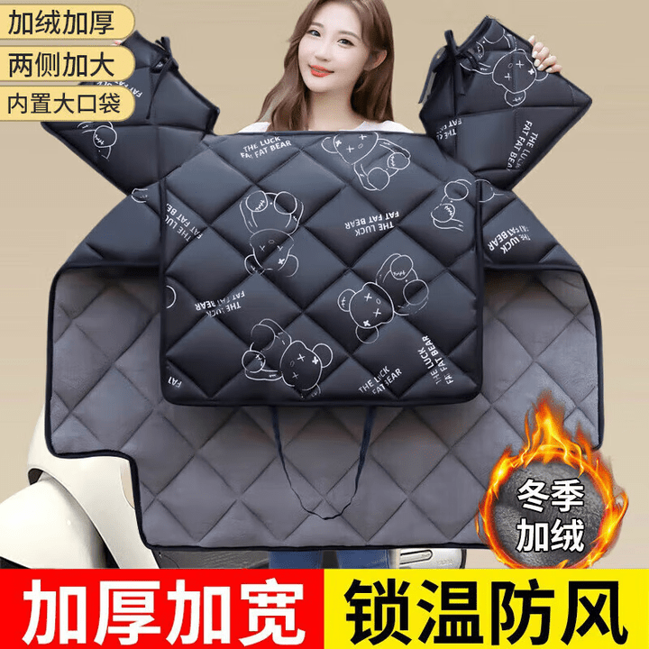 Jidaocook电动车挡风被秋冬季加大加厚防水防寒保暖挡风罩摩托电瓶车防风罩 超声波加绒加厚【暴熊黑色】 电动车挡风被