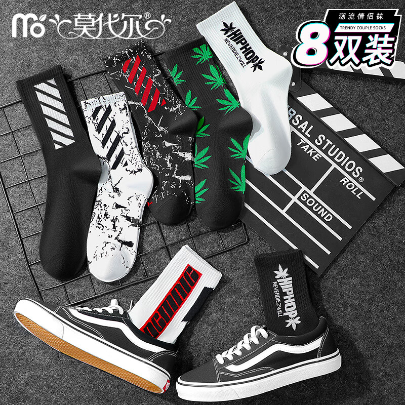 莫代尔8双装长袜子男士长筒袜秋冬街头嘻哈ins潮中高筒高帮学生滑板袜 【主图款】混色 8双 均码