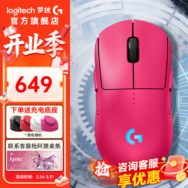 罗技(G)GPW4朱雀鹰眼无线游戏鼠标电竞鼠标朱雀猎装版狗屁王四代双模轻量化机械人体工学送男女友礼物 【爆】GPW4代朱雀-粉色