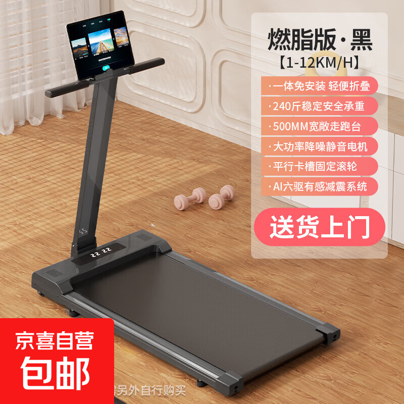踱步熊跑步机家用T601热销平板现货走步机有氧静音可折叠减肥健身 【燃脂版黑】AI柔性减震