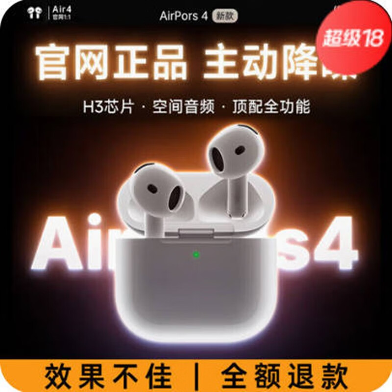 苹果无线蓝牙耳机airpods4半入耳华强北Air4降噪航大馒头 air4主动降噪版