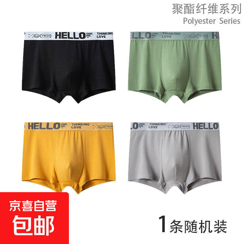 HELLO男士内裤舒适透气男平角裤中腰高弹亲肤男生宽松大码短裤头 【单条体验装】颜色随机装 3XL 【建议体重145-165斤】
