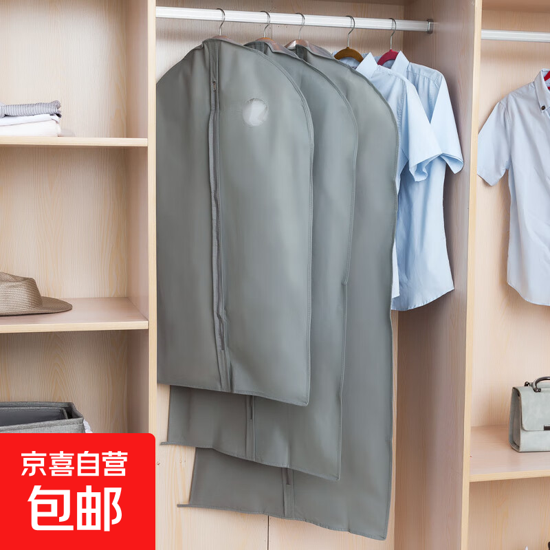 京东物流 衣服罩西服罩收纳罩衣服套挂衣袋透明家用防尘罩 深灰 100*60中号