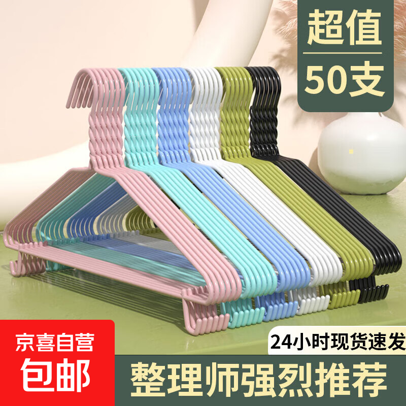 京东物流 衣架家用挂衣衣撑衣挂晾衣架挂钩宿舍用学生衣物收纳 40cm/凹槽防滑-随机色 5支